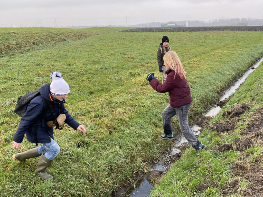 Met 9 kinderen trokken we op 14 december 2025 de Houtrakpolder in. De wind was kil en het gras was nat. Onze schoenen waren daardoor snel doorweekt, met als gevolg koude voeten! Omdat we eerst niet zo veel bijzonders zagen, kwam al snel de vraag: Hoe lang moeten we nog? Maar toen ontdekten we een Havik en enkele Torenvalken, vonden we eitjes in een oud nest van een Boerenzwaluw, moesten we over een sloot springen, zagen we prachtige Pijlstaarten en Slobeenden, klommen we over een hek en vlogen er Witgatjes en Watersnippen op. De sfeer werd weer positief. Helemaal toen er tot onze verrassing een prachtige Zwarte Zwaan naar ons toe zwom. We waren verkocht. Toen we wegliepen vloog de zwaan uit Australië zelfs een stukje met ons mee en toonde de vogel zijn verrassend witte vleugels.